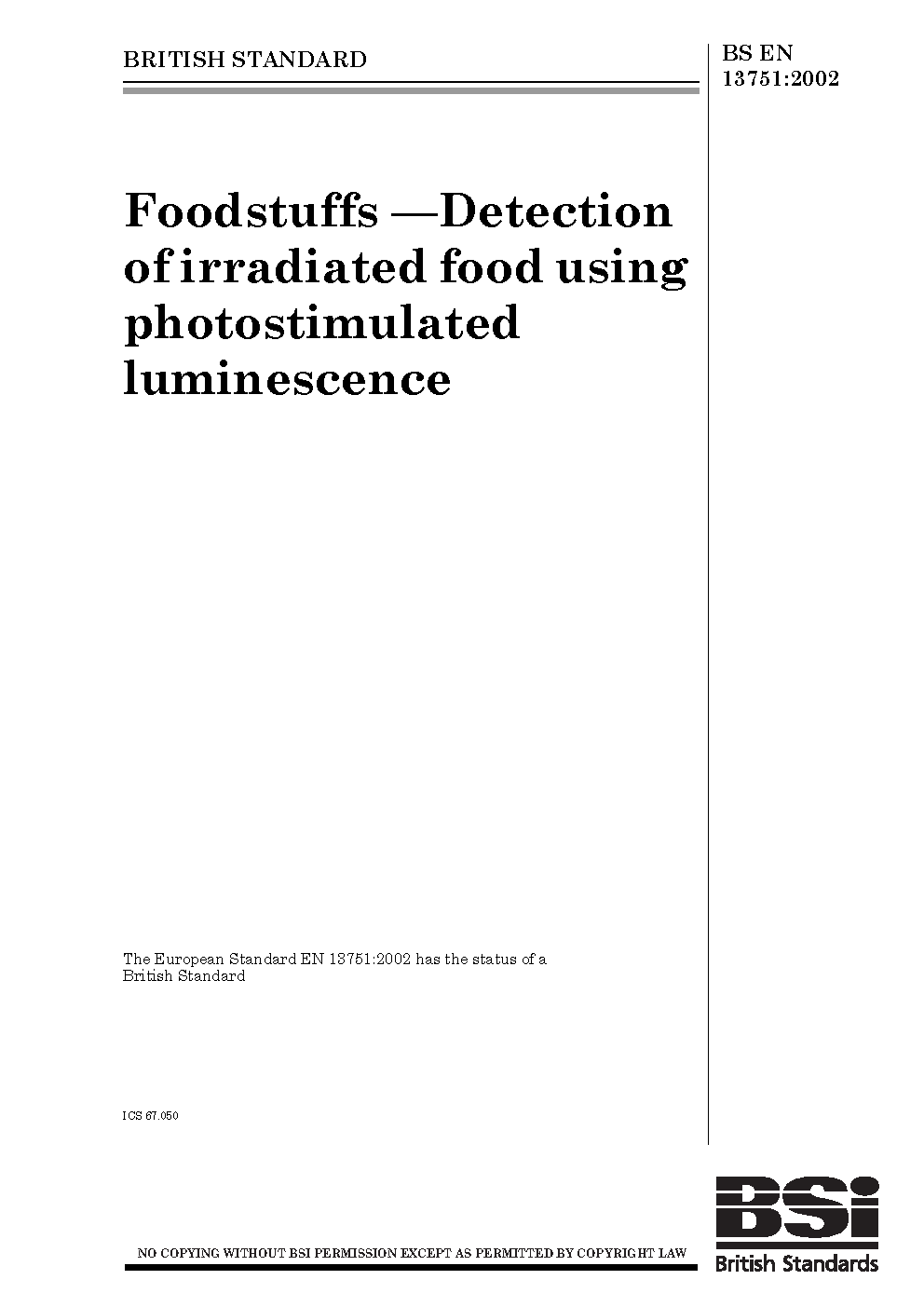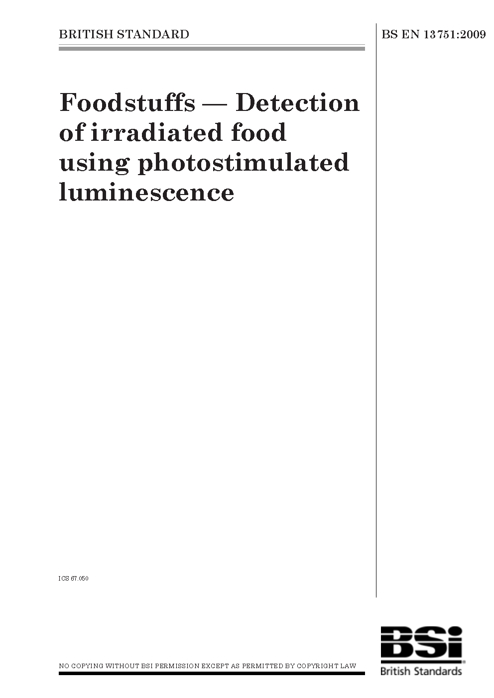 Foodstuffs. Detection of irradiated food using photostimulated luminescence