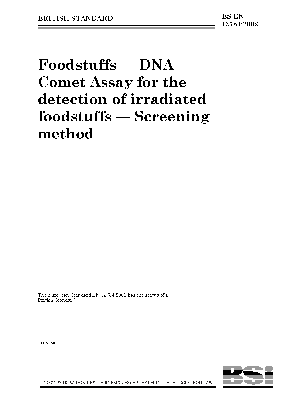Foodstuffs. DNA comet assay for the detection of irradiatied foodstuffs. Screening method