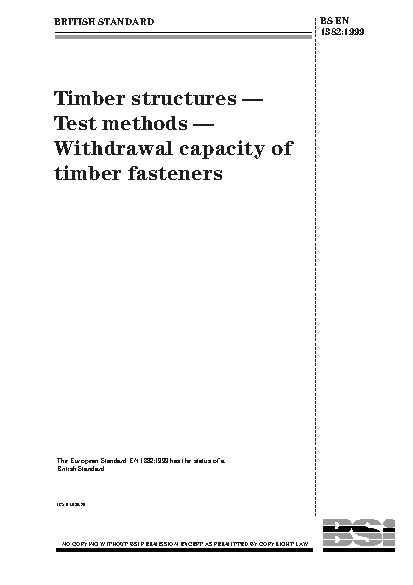 Timber structures. Test methods. Withdrawal capacity of timber fasteners