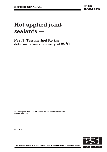 Hot applied joint sealants Test method for the determination of density at 25°C