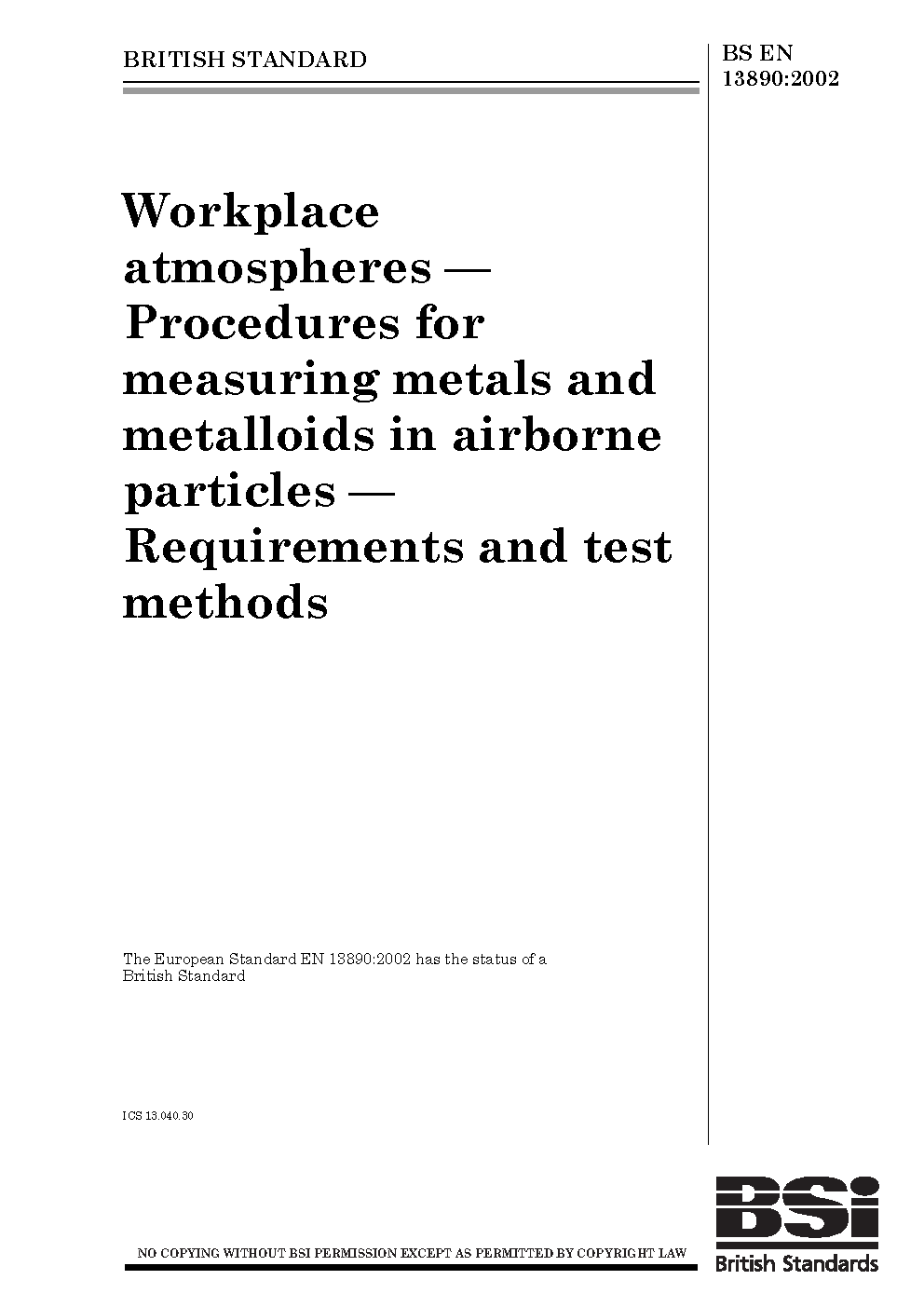 Workplace exposure. Procedures for measuring metals and metalloids in airborne particles. Requirements and test methods