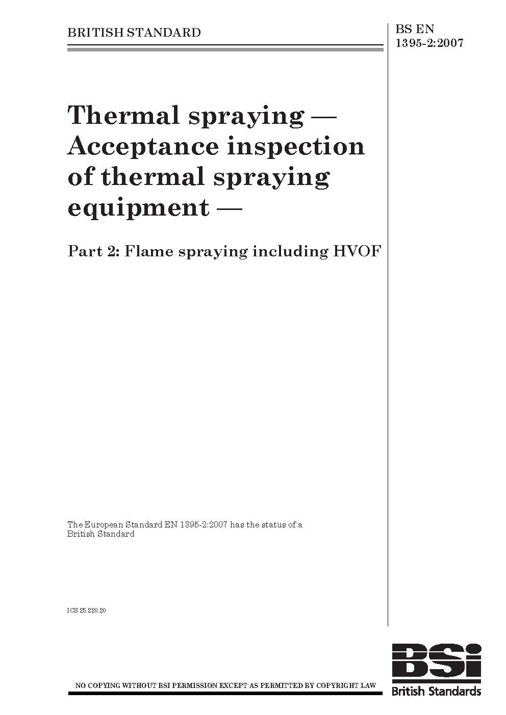 Particulate materials;Wires;Bars (materials);Sprayers;Gases;Spraying (coating);Sprayer nozzles;Acceptance inspection;Metal spraying;Flame spraying;Coating processes;Liquid fuels;Performance testing;Acceptance (approval)