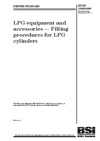 Dangerous materials;Equipment safety;Occupational safety;Liquefied gases;Petroleum products;Pressure vessels;Gas cylinders;Packaging processes;Filling;Liquefied petroleum gas;Materials handling;Gas storage;Gas technology;Gases