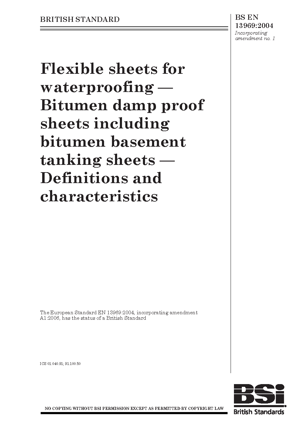 Flexible sheets for waterproofing. Bitumen damp proof sheets including bitumen basement tanking sheets. Definitions and characteristics