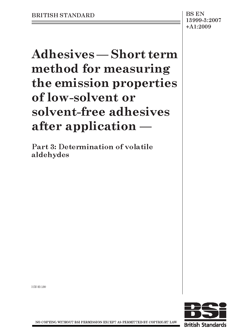 Adhesives. Short term method for measuring the emission properties of low-solvent or solvent-free adhesives after application Determination volatile aldehydes