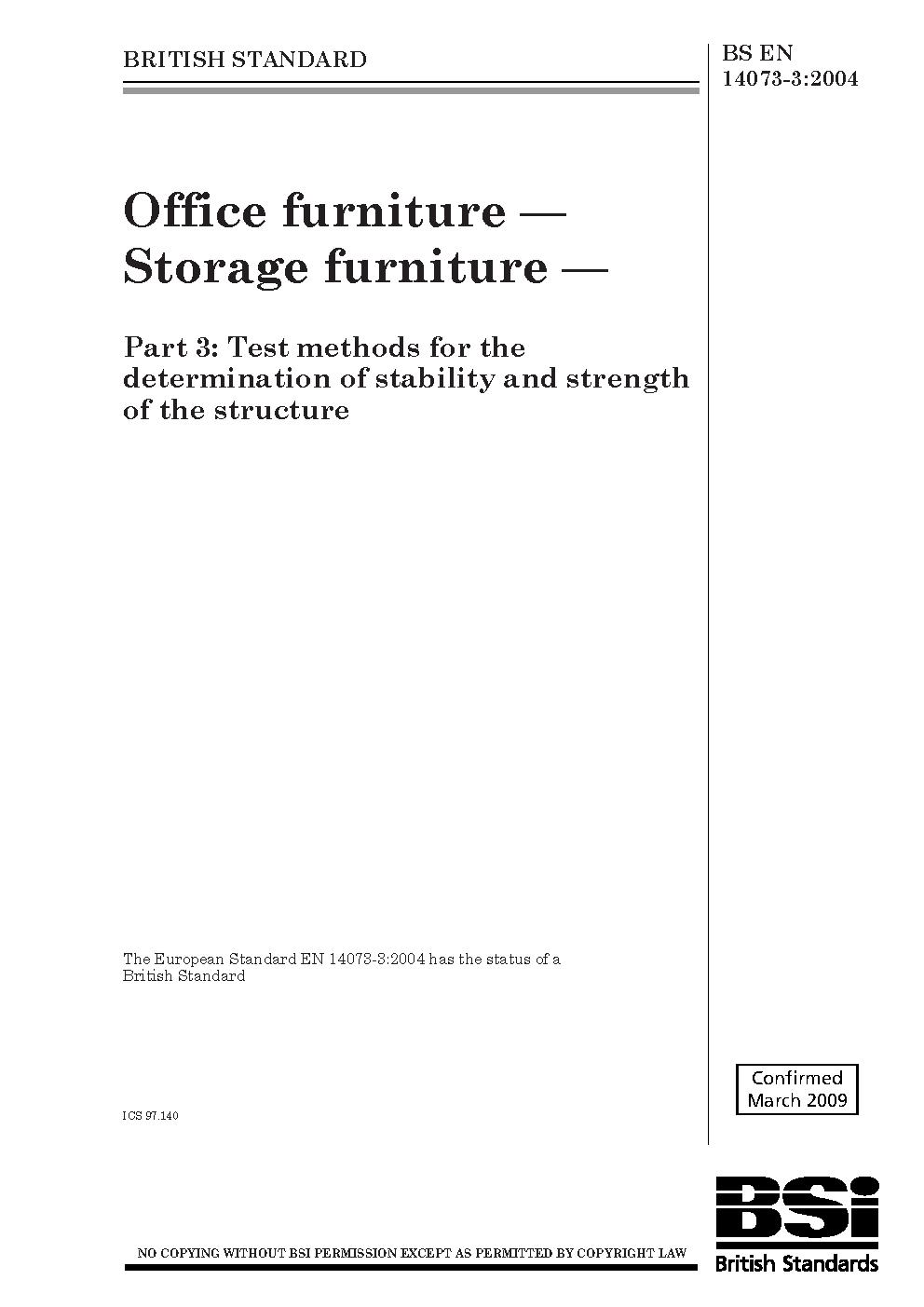 Office furniture. Storage furniture Test methods for the determination of stability and strength structure