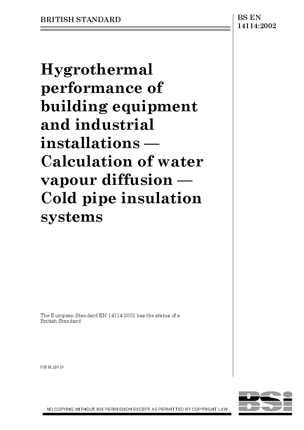 Hygrothermal performance of building equipment and industrial installations. Calculation of water vapour diffusion. Cold pipe insulation systems
