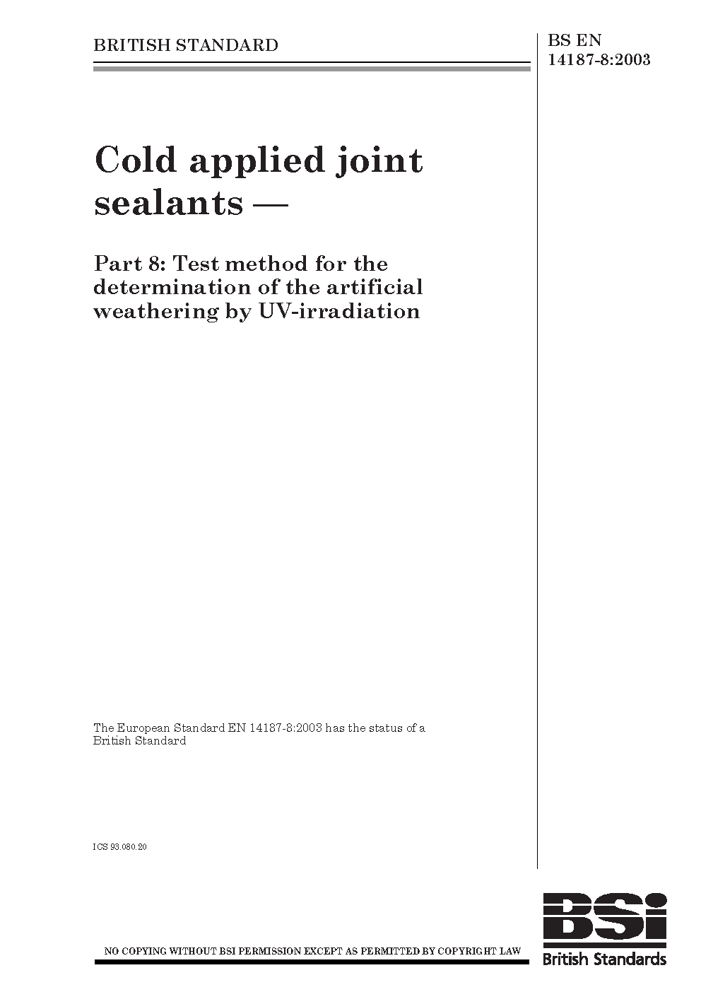 Cold applied joint sealants Test method for the determination of artificial weathering by UV-irradiation