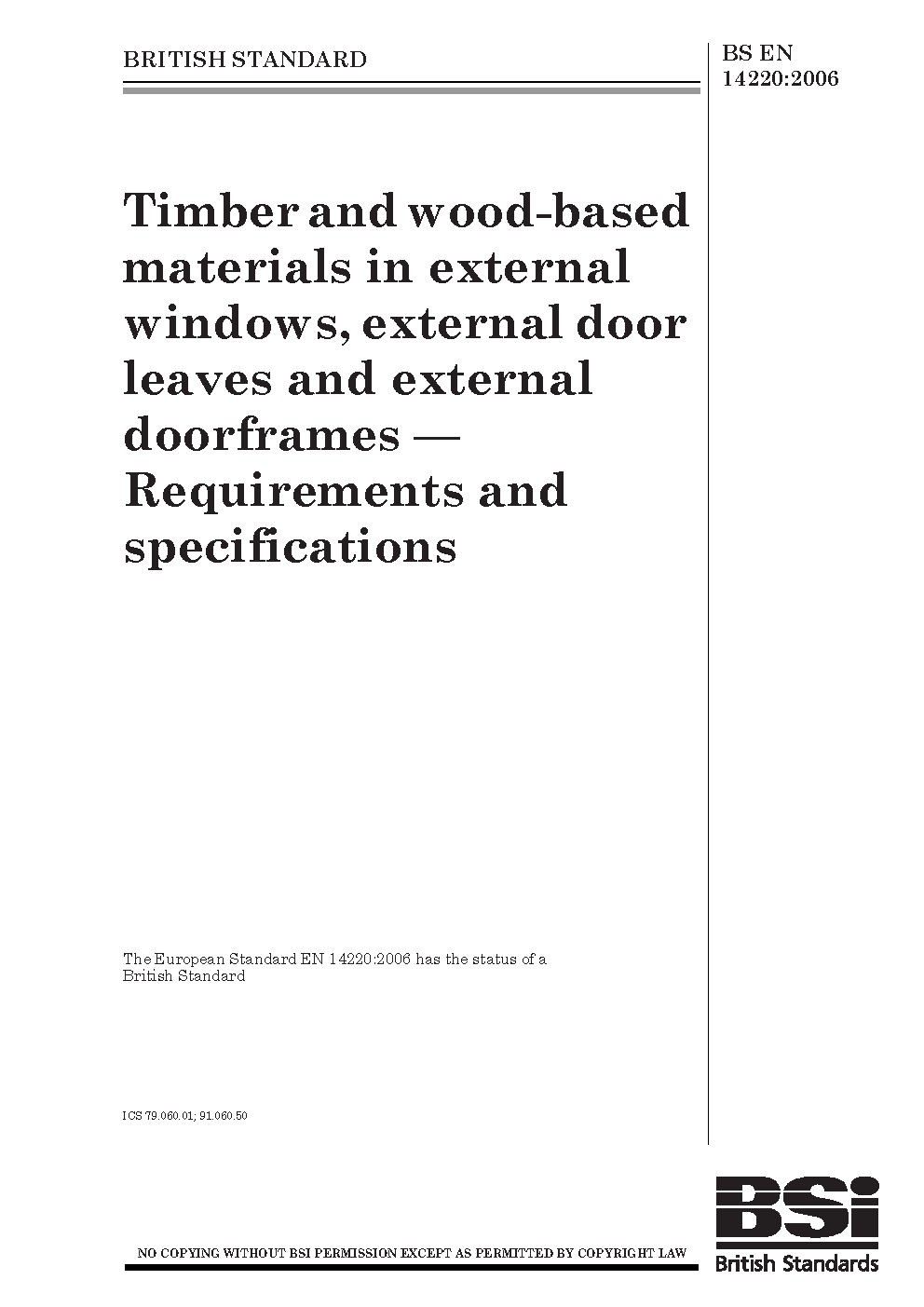 Timber and wood-based materials in external windows, external door leaves and external doorframes. Requirements and specifications