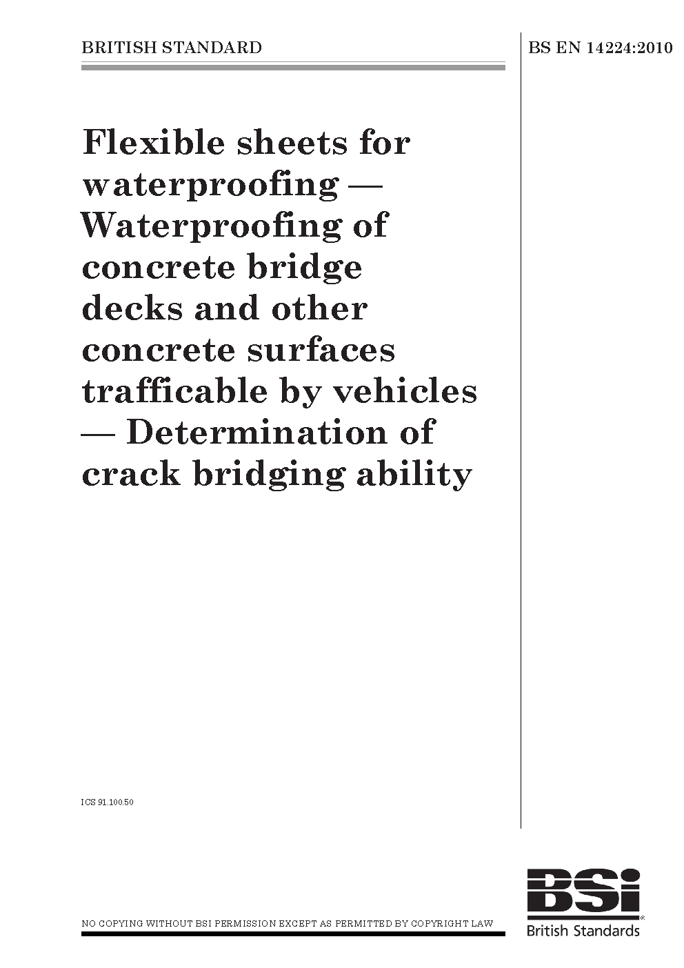 Flexible sheets for waterproofing. Waterproofing of concrete bridge decks and other concrete surfaces trafficable by vehicles. Determination of crack bridging ability