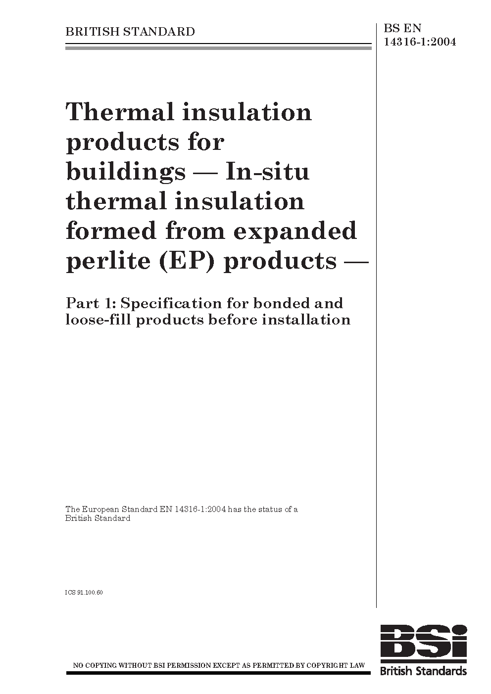 Thermal insulation products for buildings. In-situ thermal formed from expanded perlite (EP) Specification bonded and loose-fill before installation