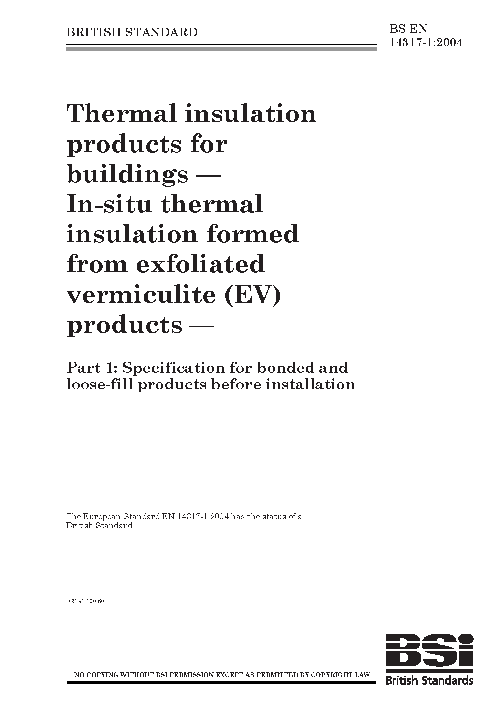 Thermal insulation products for buildings. In-situ thermal formed from exfoliated vermiculite (EV) Specification bonded and loose-fill before installation
