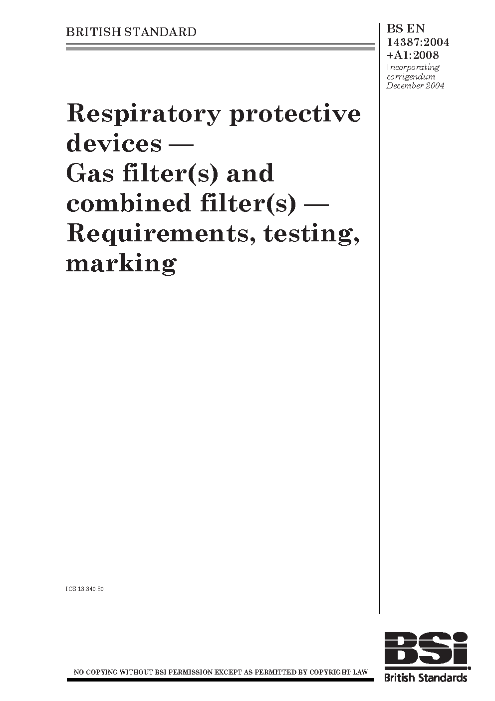 Respiratory protective devices. Gas filter(s) and combined filter(s). Requirements, testing, marking