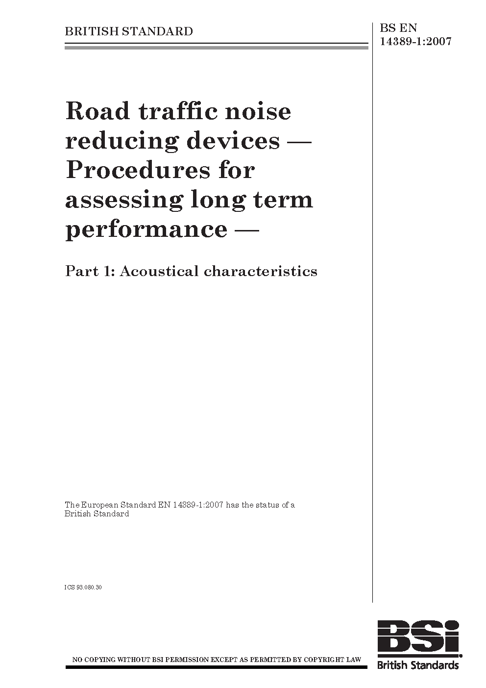 Road traffic noise reducing devices. Procedures for assessing long term performance Acoustical characteristics