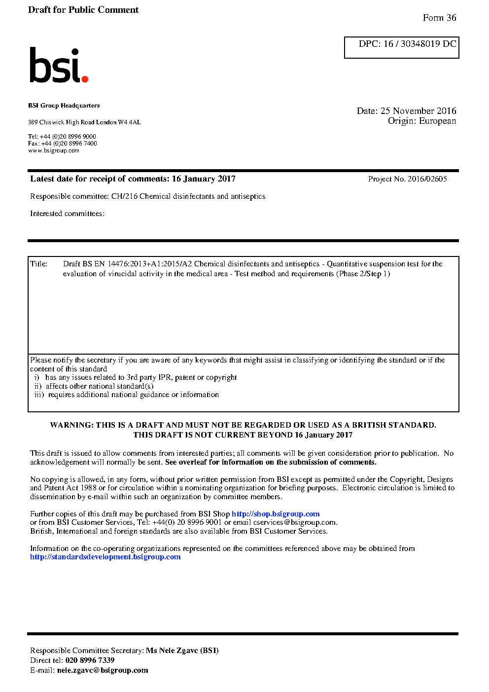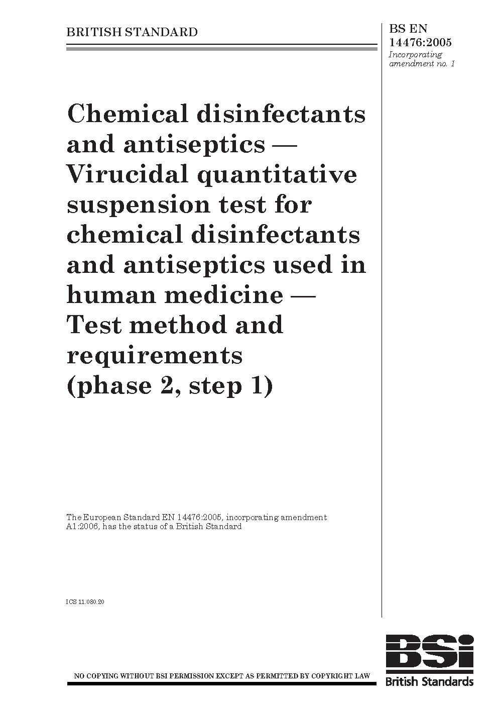 Chemical disinfectants and antiseptics. Quantitative suspension test for the evaluation of virucidal activity in the medical area. Test method and requirements (Phase 2/Step 1)
