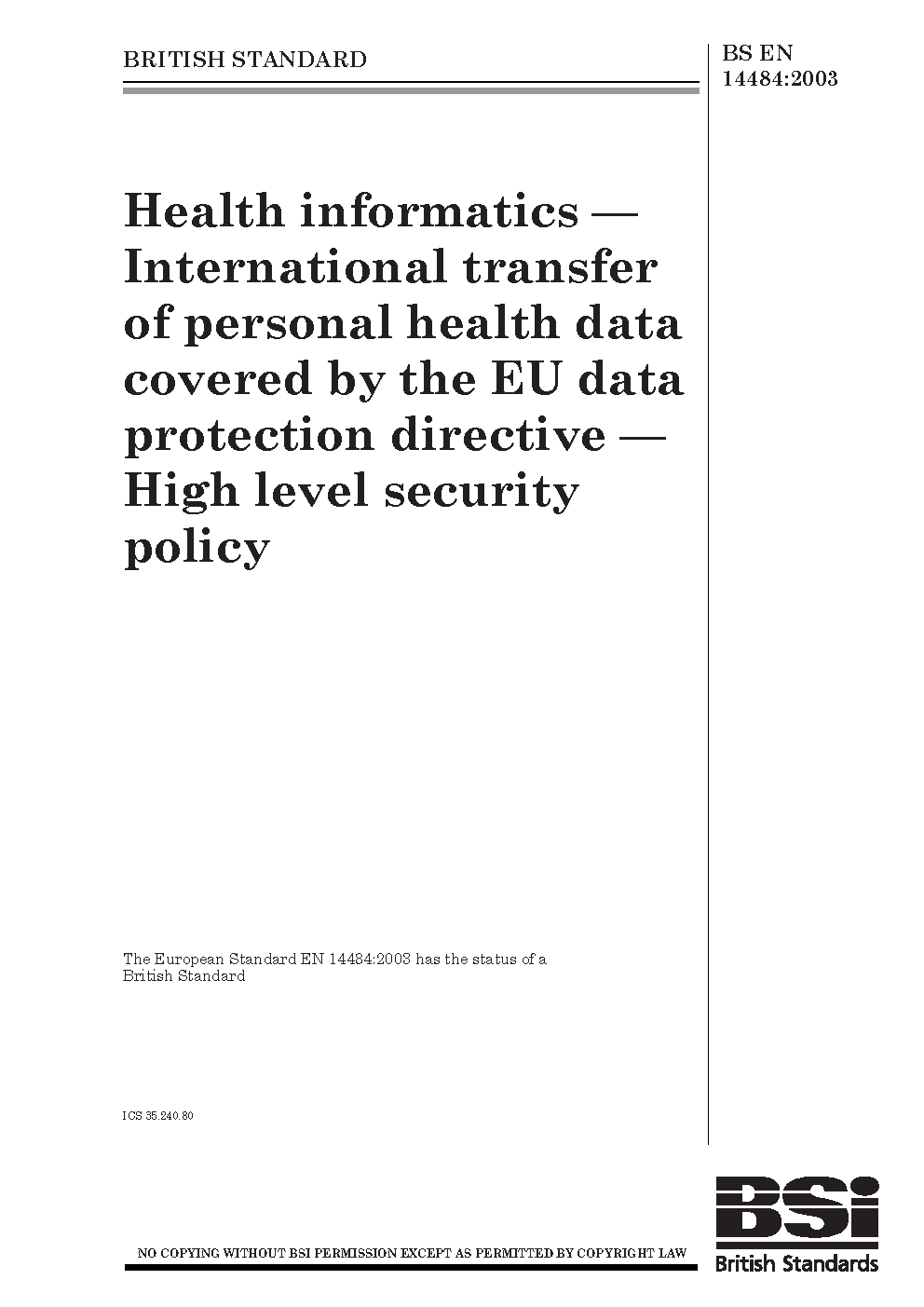 Health informatics. International transfer of personal health data covered by the EU data protection directive. High level security policy