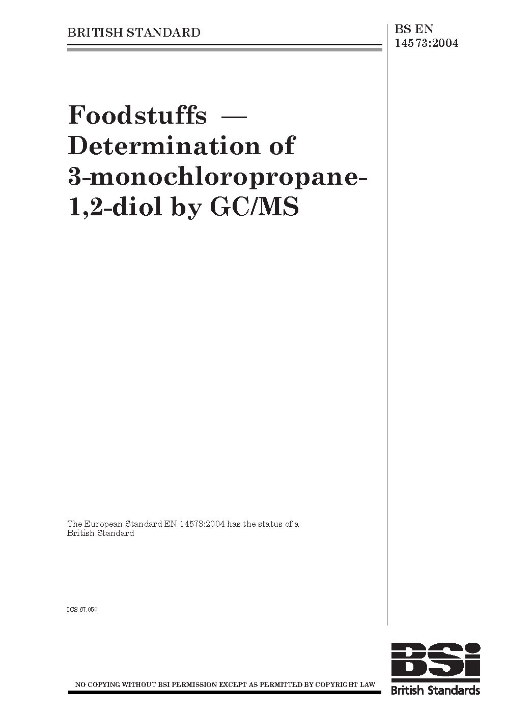 Foodstuffs. Determination of 3-monochloropropane-1,2-diol by GC/MS