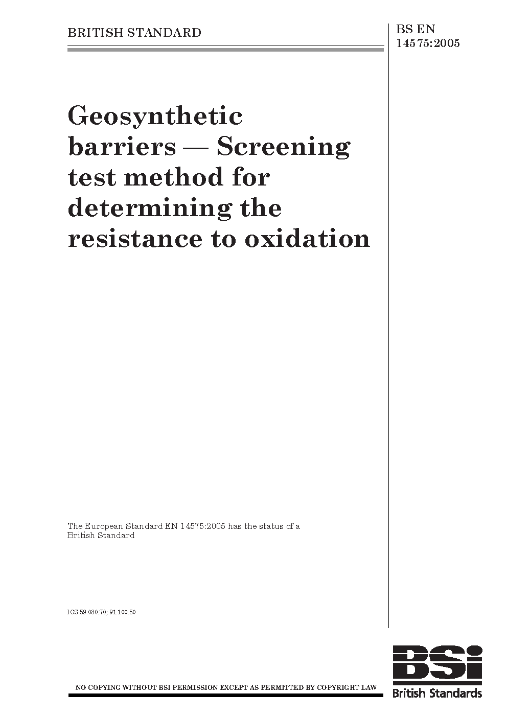 Geosynthetic barriers. Screening test method for determining the resistance to oxidation