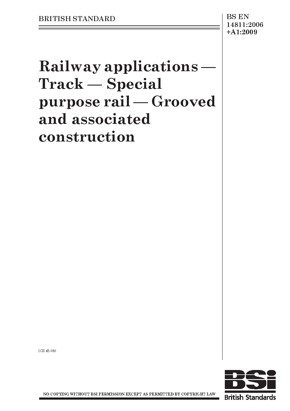Railway applications. Track. Special purpose rail. Grooved rails and associated construction profiles