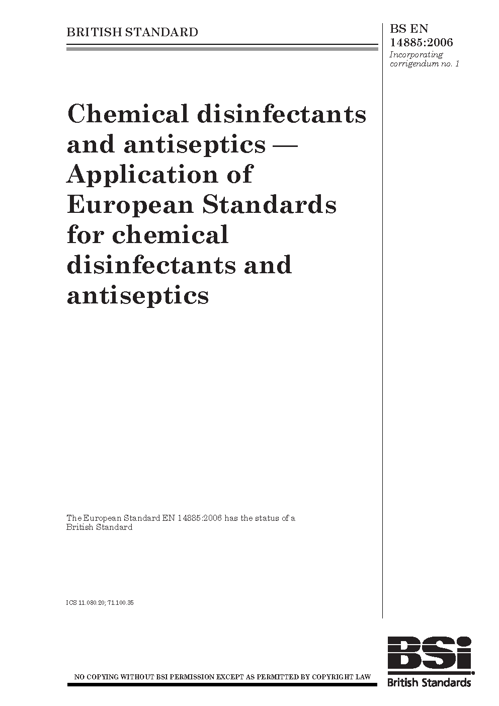 Chemical disinfectants and antiseptics. Application of European Standards for chemical disinfectants and antiseptics