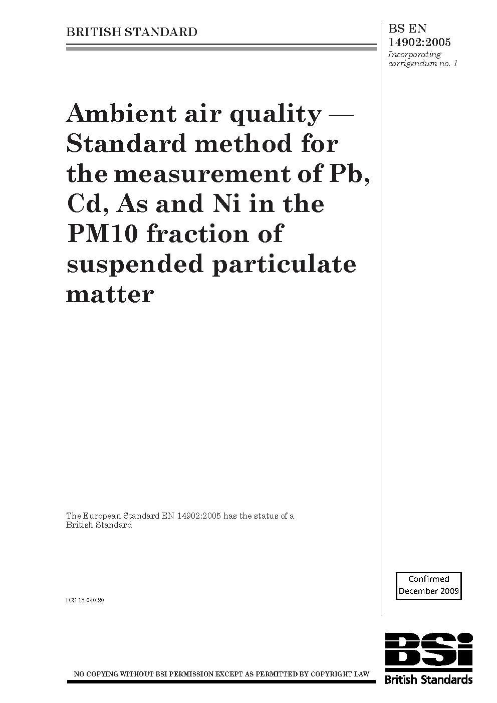 Ambient air quality. Standard method for the measurement of Pb, Cd, AS, and Ni in the PM 10 fraction of suspended particulate matter