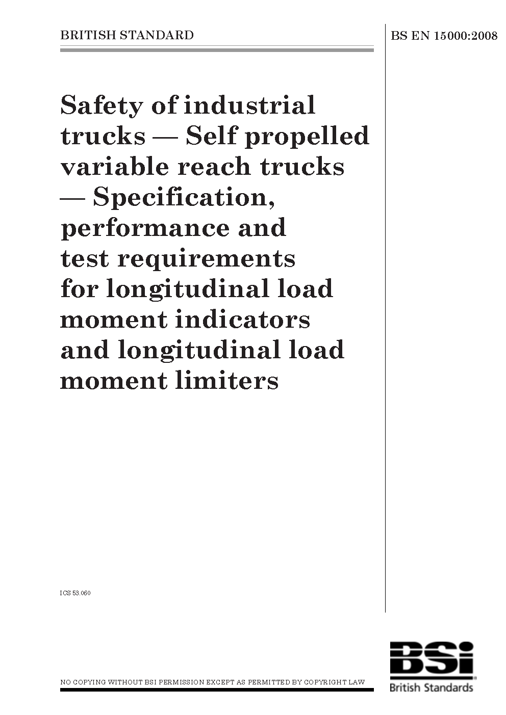 Verification;Reach trucks;Control equipment;Performance;Industrial trucks;Materials handling equipment;Safe-load indicators;Instructions for use;Warning devices;Longitudinal;Fork trucks;Equipment safety;Hazards;Safety devices