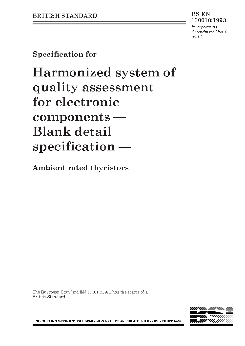 Specification for harmonized system of quality assessment for electronic components. Blank detail specification: ambient rated thyristors