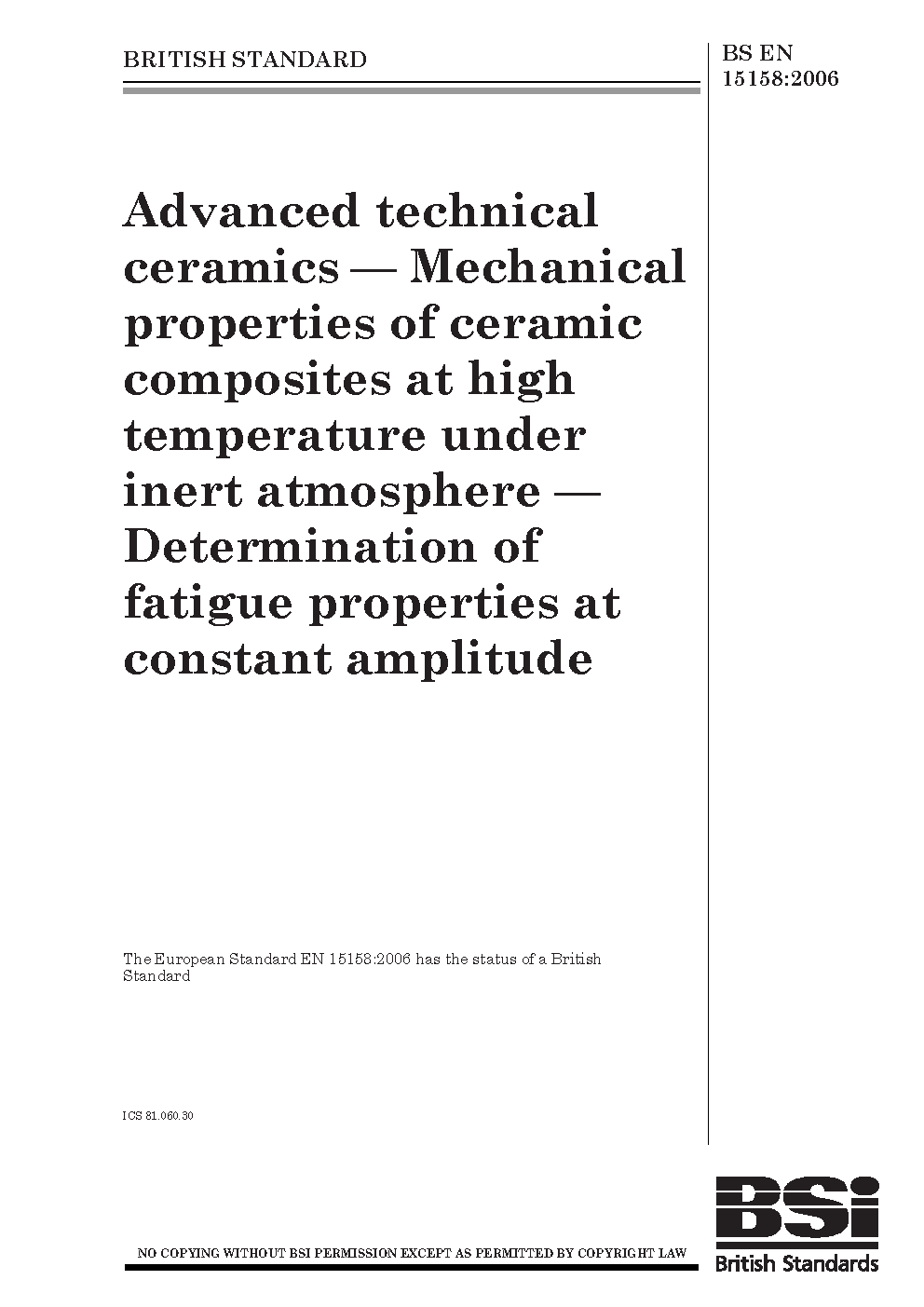 Advanced technical ceramics. Mechanical properties of ceramic composites at high temperature under inert atmosphere. Determination of fatigue properties at constant amplitude