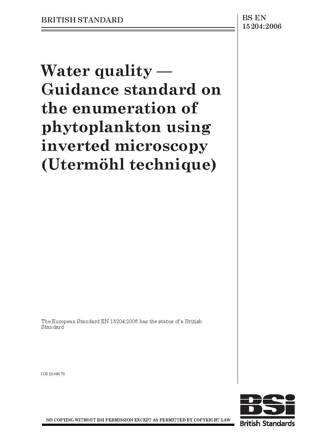 Water quality. Guidance standard on the enumeration of phytoplankton using inverted microscopy (Utermoehl technique)