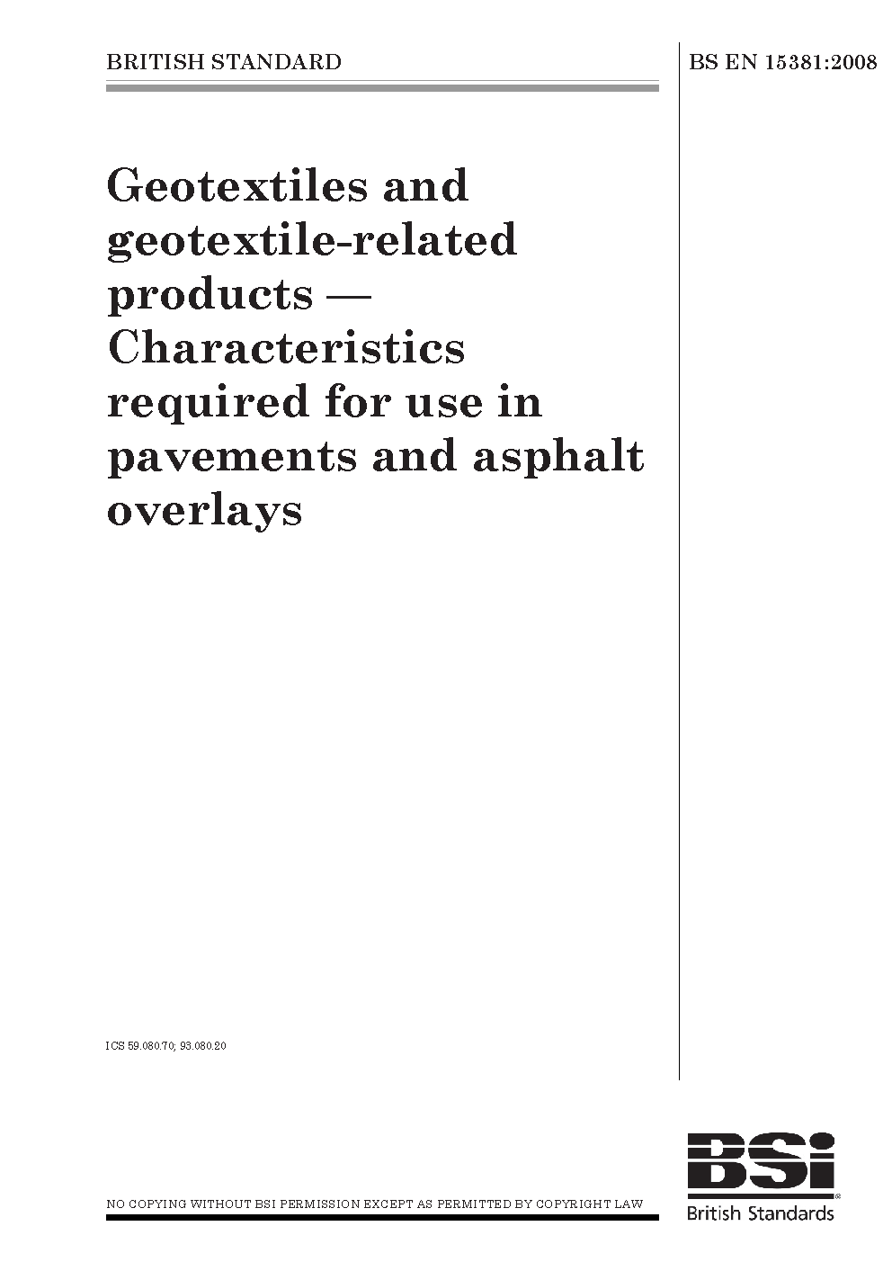 Pavements (roads);Geosynthetic materials;Testing;Conformity;Roads;Geotextiles;Verification;Asphalts;Textile products;Bitumens;Construction materials;Exterior circulation spaces (buildings);Quality control