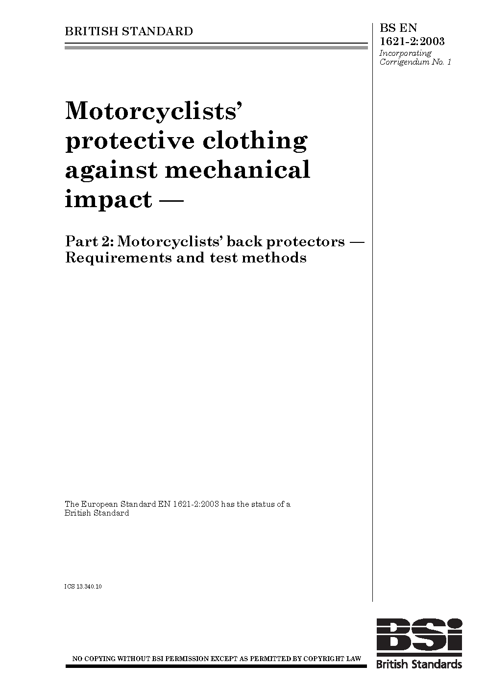 BS EN 1621-2:2003