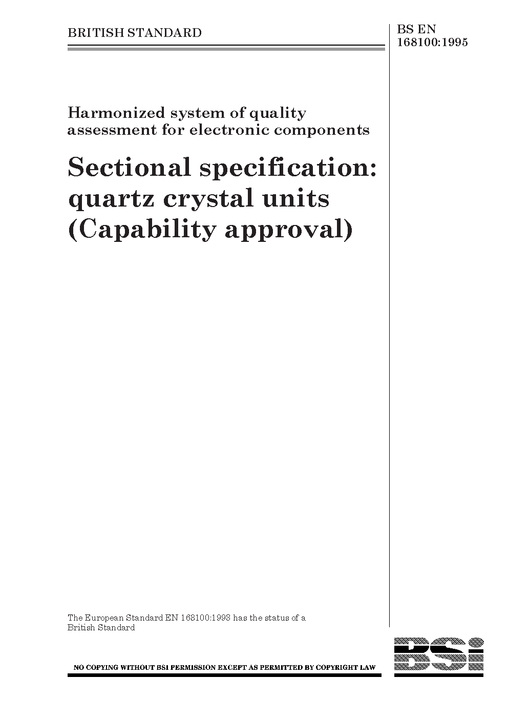 Harmonized system of quality assessment for electronic components. Sectional specification: quartz crystal units (capability approval)