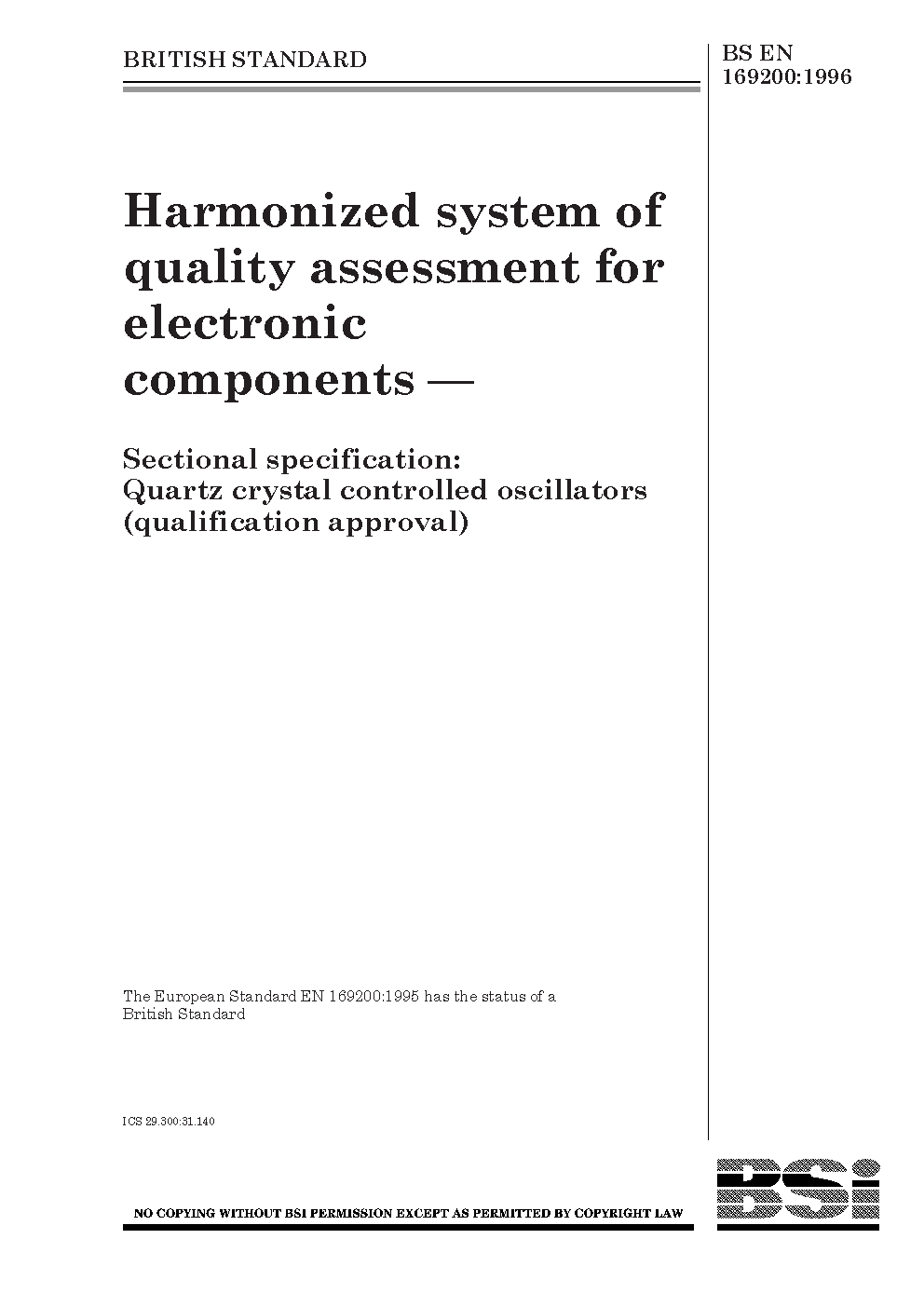 Harmonized system of quality assessment for electronic components. Sectional specification: Quartz crystal controlled oscillators (qualification approval)