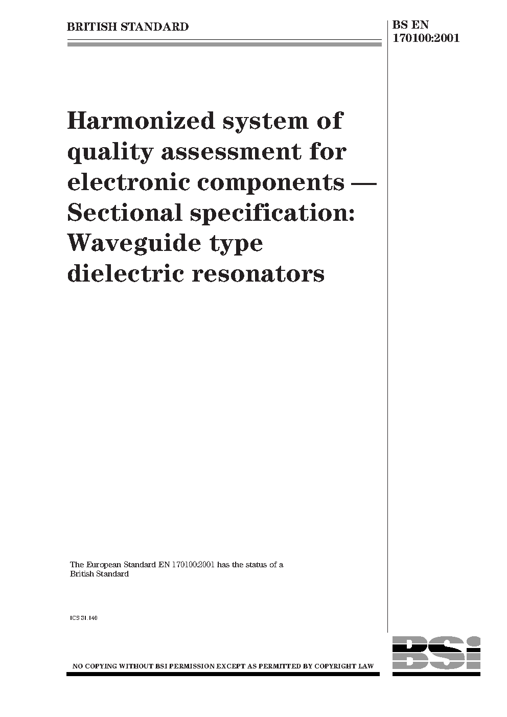 Harmonized system of quality assessment for electronic components. Sectional specification: Waveguide type dielectric resonators