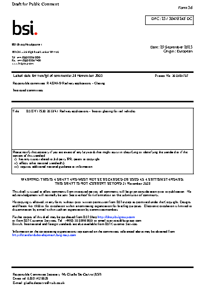 Railway applications. Interior glazing for rail vehicles