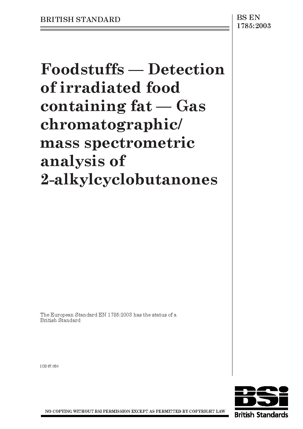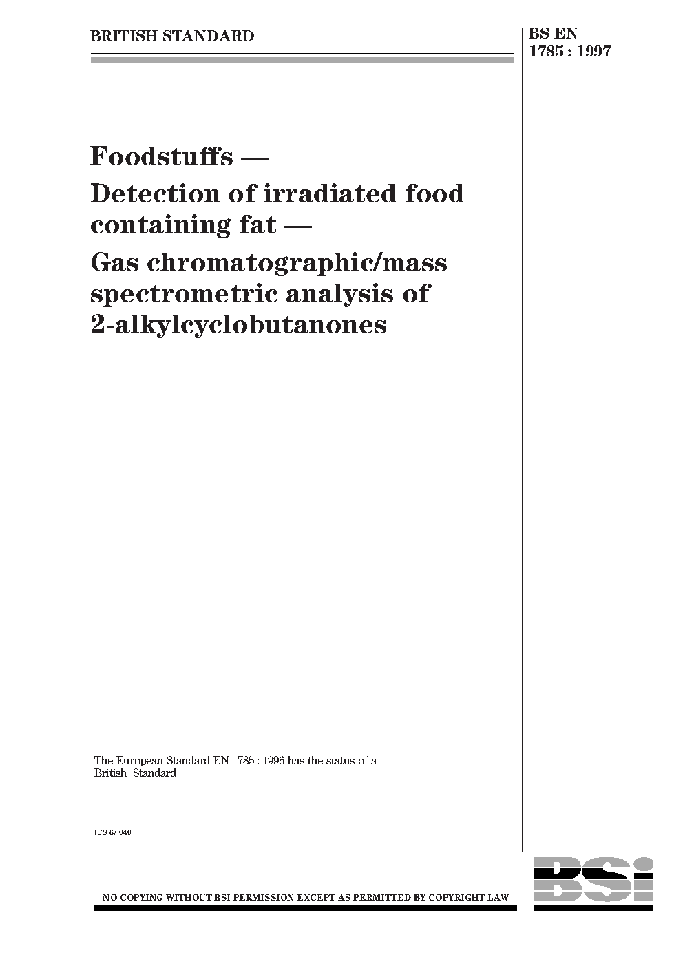 Foodstuffs. Detection of irradiated food containing fat. Gas chromatographic/mass spectrometric analysis of 2-alkylcyclobutanones