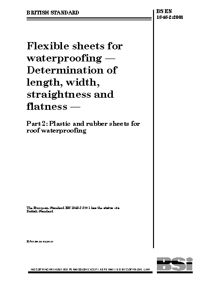 Rubber;Length;Straightness measurement;Sheet materials;Dimensional measurement;Width;Waterproofing materials;Flatness measurement;Waterproof materials;Sheet roof coverings;Width measurement;Plastics;Flexible materials;Length measurement;Rolls
