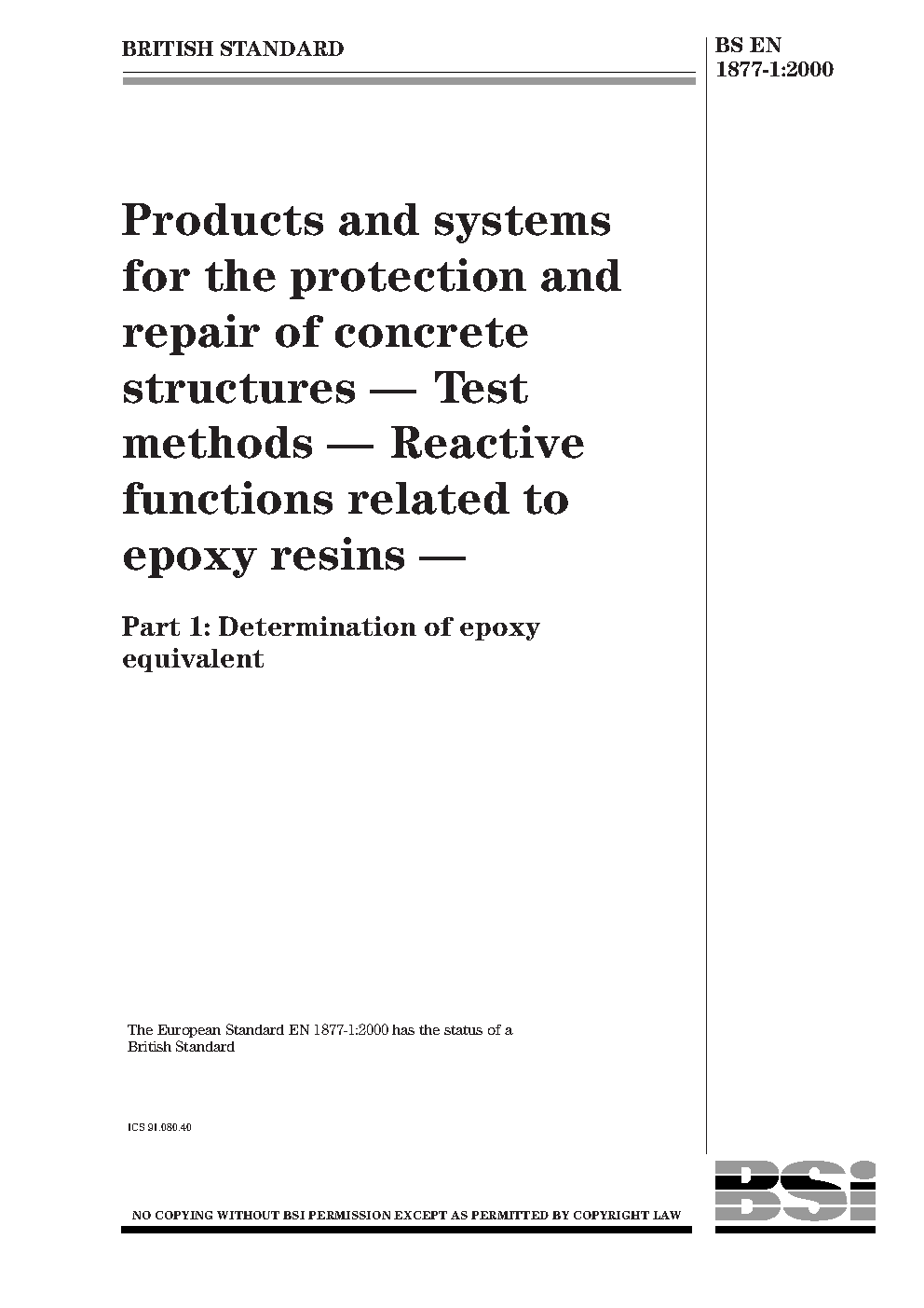 Products and systems for the protection repair of concrete structures. Test methods. Reactive functions related to epoxy resins Determination equivalent