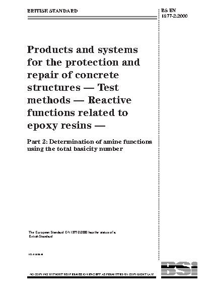 Products and systems for the protection repair of concrete structures. Test methods. Reactive functions related to epoxy resins Determination amine using total basicity number