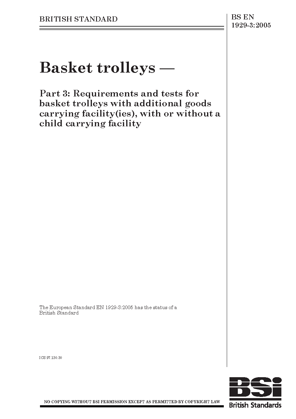 Baskets;Materials handling;Shop fittings;Materials handling equipment;Trolleys;Mechanical testing;Dimensions;Performance;Retailing;Safety measures;Childproof equipment
