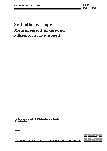 Self adhesive tapes. Measurement of unwind adhesion at low speed