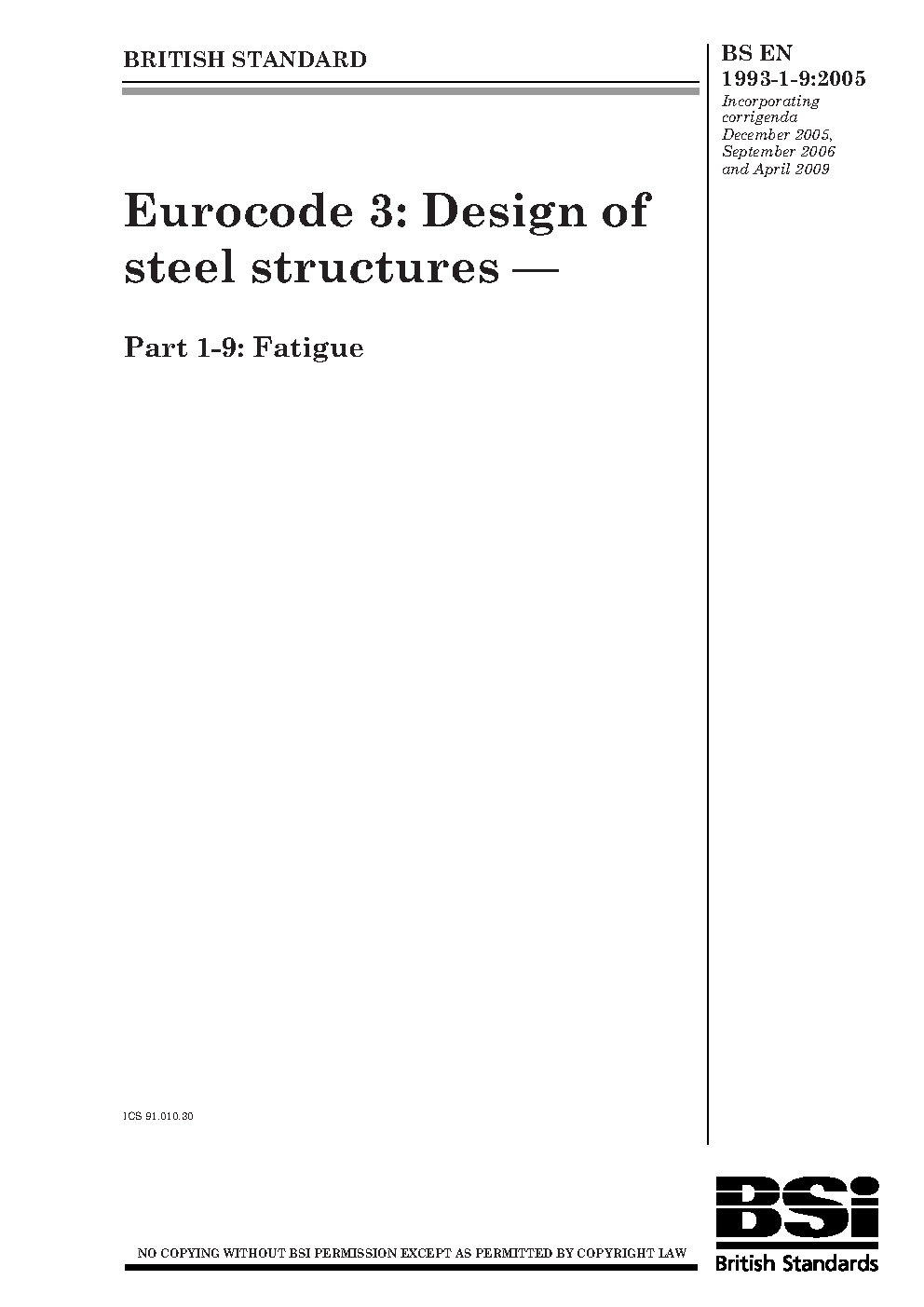 Eurocode 3: Design of steel structures Part 1-9: Fatigue