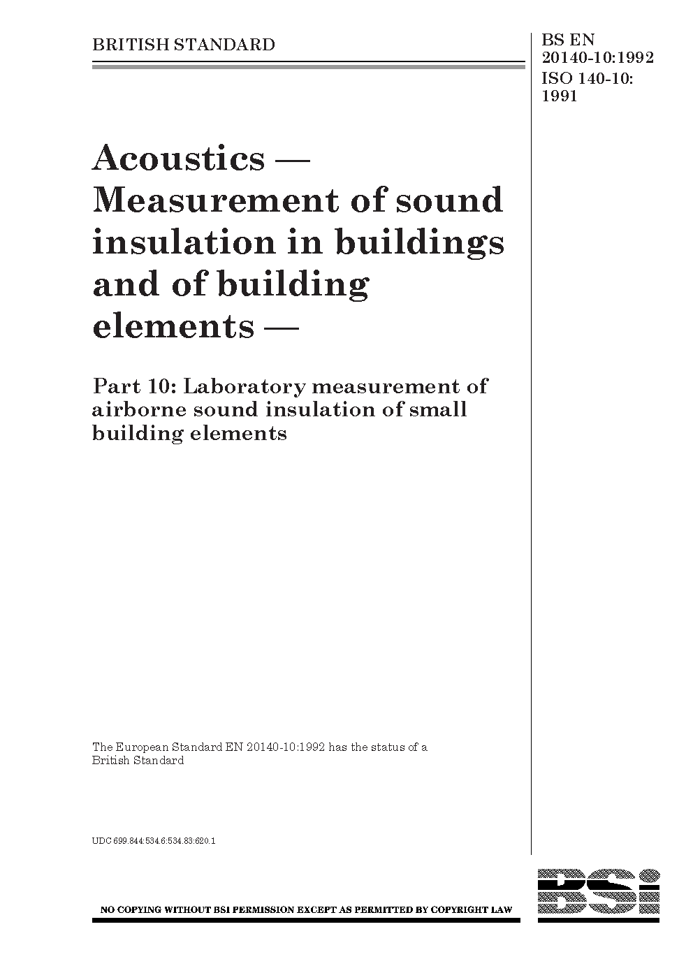 Acoustics. Measurement of sound insulation in buildings and building elements Laboratory measurement airborne small