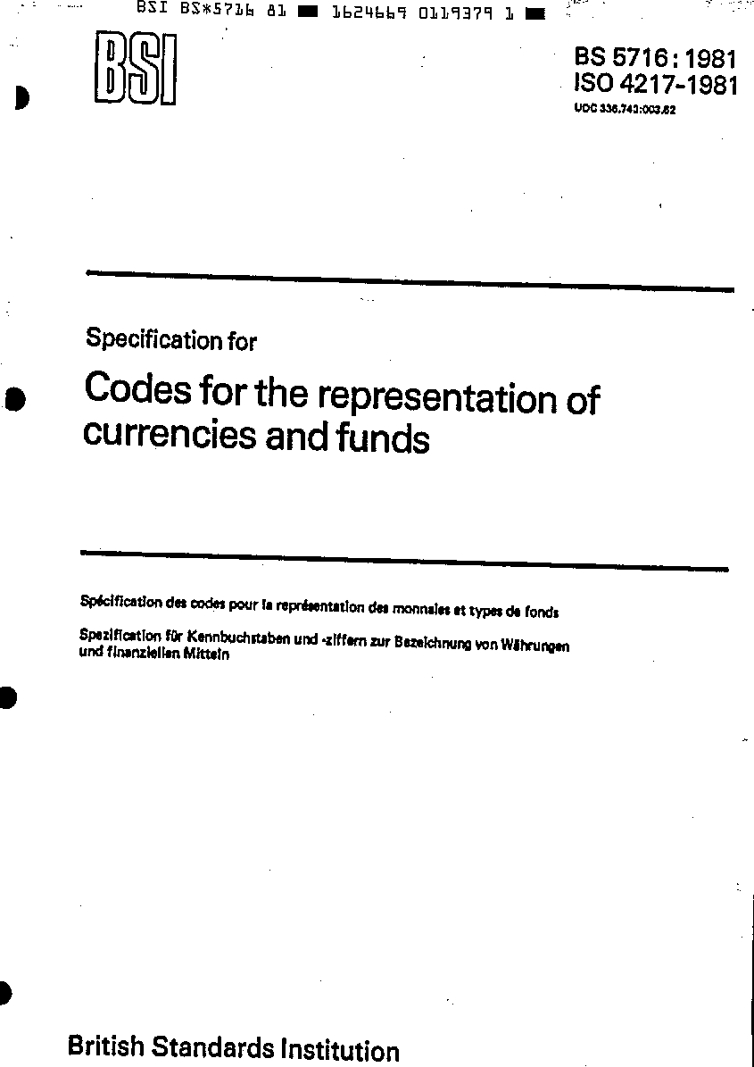 Codes for the representation of currencies and funds