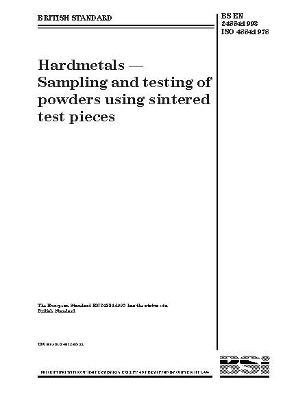 Hardmetals. Sampling and testing of powders using sintered test pieces
