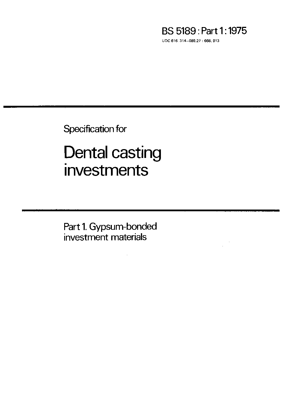 Specification for dental gypsum-bonded casting investments for gold alloys