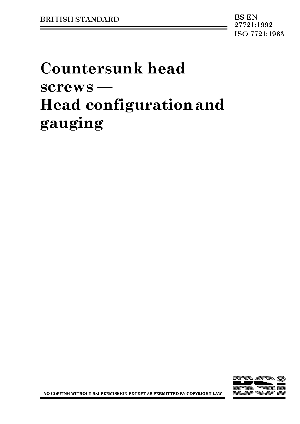 Countersunk head screws. Head configuration and gauging