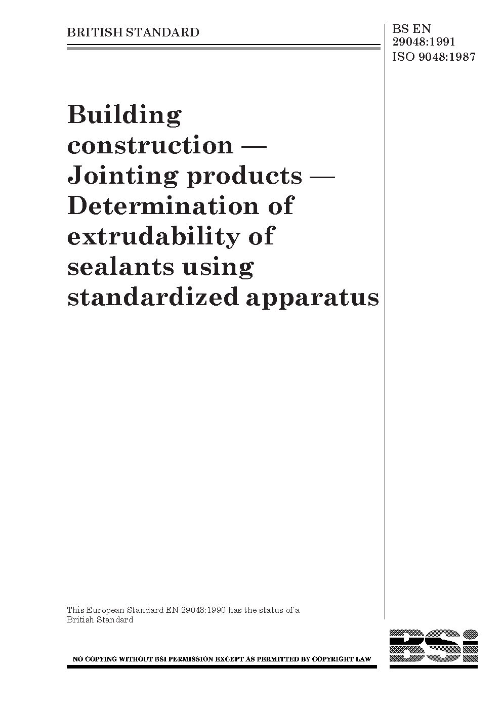 Building construction. Jointing products. Determination of extrudability of sealants using standardized apparatus
