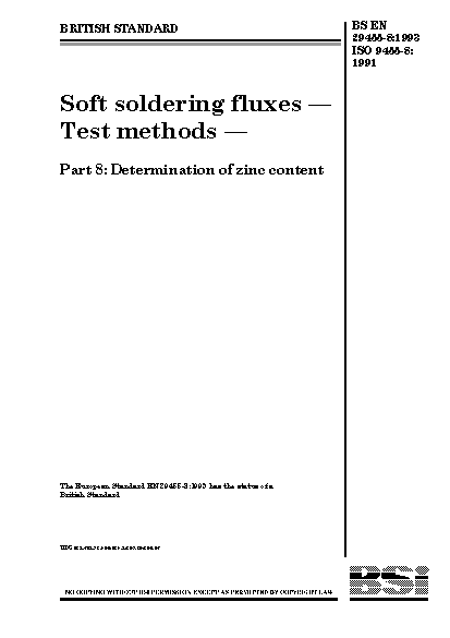 Soft soldering fluxes. Test methods Determination of zinc content