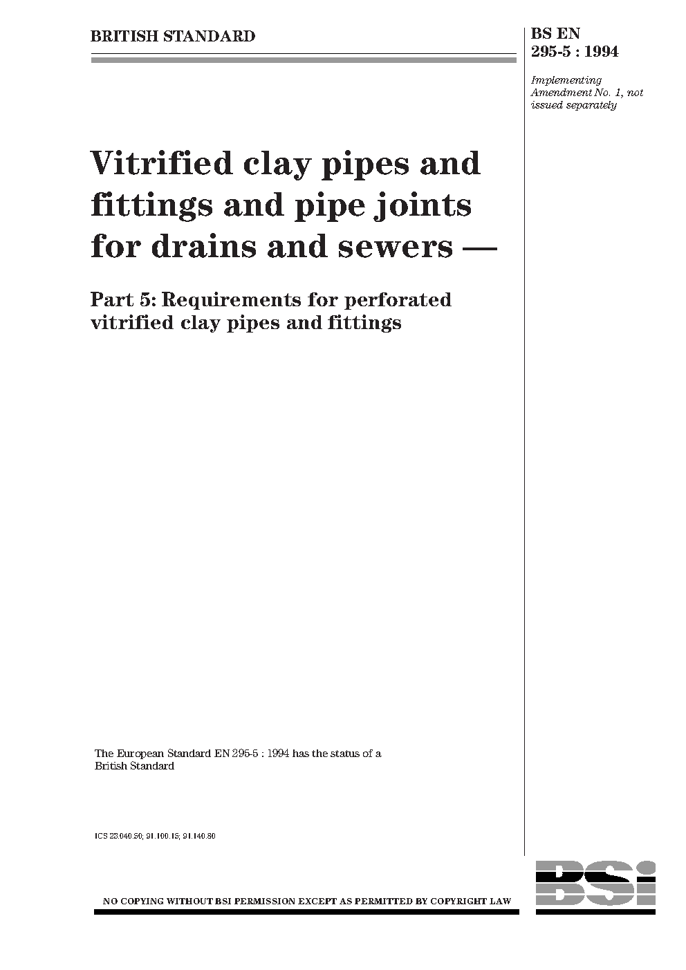 Vitrified clay pipes and fittings pipe joints for drains sewers Requirements perforated vitrified